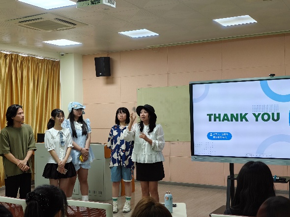 梁燕碧老师表扬了大家在这一年里与老师沟通积极、总结认真,同时也提醒在返回国内后要有意识地进行中文语境切换。最后刘向楠老师则补充道,语境转换是很重要的一部分,在大四的同声传译课程上将会起到重大作用。同时在日语之外可适当学习韩语,增强多语言能力,为未来就业或深造做准备。刘向楠老师同时也表示作为22级的班主任,很高兴看到同学们在交流和成长中变得更加开朗自信了,真是一段难得的留学经历。