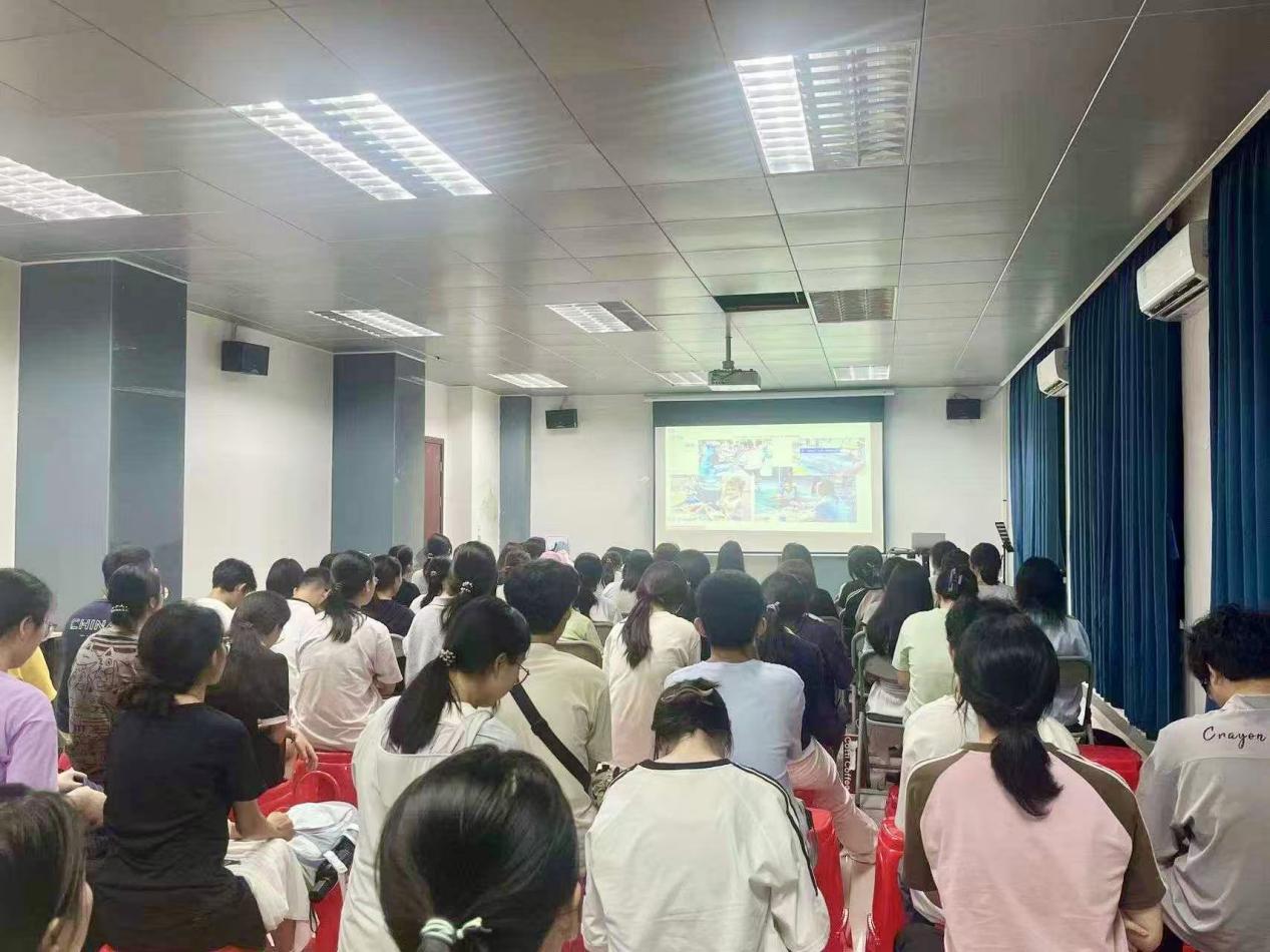 10月13日晚19点,外国语学院在广州校区乐学楼304及佛山校区有为书院9栋活动室同步开展暑期社会实践分享会,学院团委书记马辉及50余位同学参会。两地学子共赴这场充满青春力量的实践盛宴,聆听五支实践团带来的实践故事。