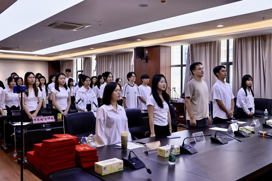 随后,全体成员庄严宣誓,并齐唱校歌,展现出新一届团学队伍的凝聚力与使命感。