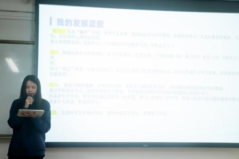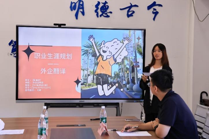 陈婧玮同学将目光投向农产品国际推广翻译领域,她结合家人朋友的建议,不断完善自我认知与职业规划,为这一兼具专业性与社会价值的职业方向注入个人思考。