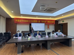 2025年12月23日,外国语学院教职工大会暨第一届“双代会”第四次会议在立德楼(北二)931隆重召开。学院党委书记龚义荣,院长杜萍,副院长武敏、胡红辉、姜滕龙,分工会主席黄晓山,委员孙奕东、周媛、罗志强等全院98位老师参加大会,龚义荣主持大会。