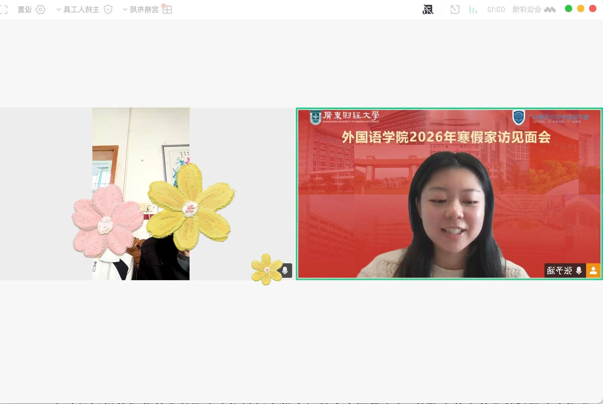学工团队通过线上视频平台,和身处外地的家庭经济困难学生开展“云家访”。