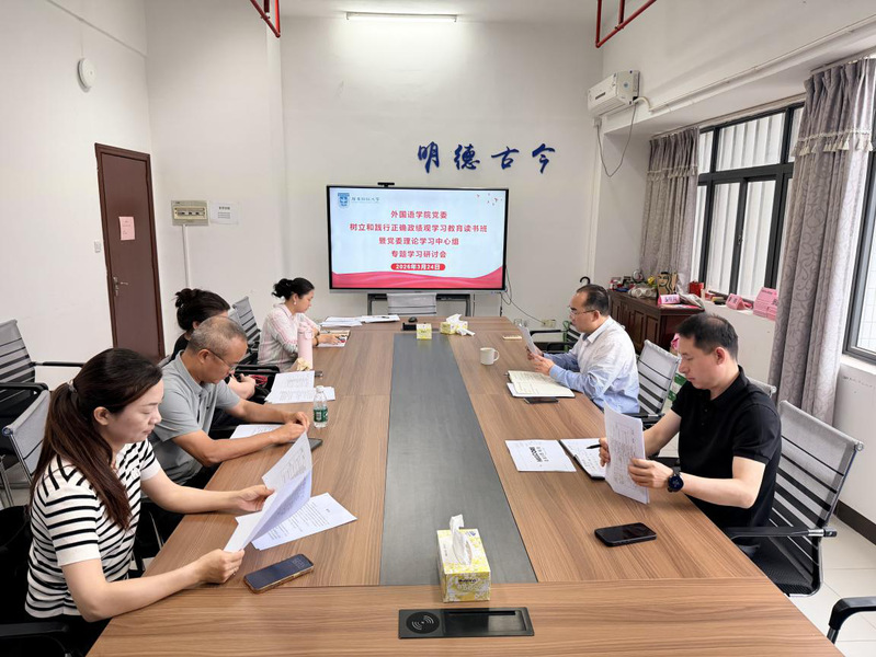 为深入学习贯彻习近平新时代中国特色社会主义思想,3月24日,外国语学院党委理论学习中心组开展树立和践行正确政绩观学习教育专题读书班。学院党委班子成员、各党支部书记参加会议,会议由学院党委书记主持。